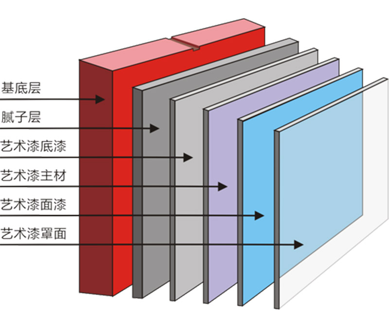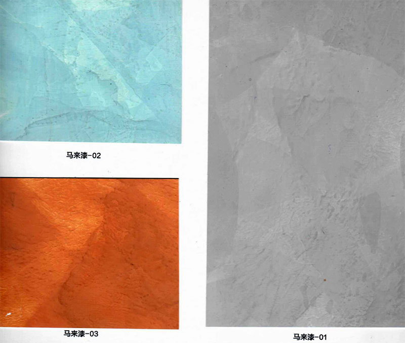 Substrate treatment: Make a good putty base according to the standards for making high-end interior wall paint. Remember: you must use good interior wall putty, because Malay paint is a high-end art paint, and it is a self-sealing paint without primer. Ensure the density and firmness of the substrate.After patching the putty, use No. 350 sandpaper to smooth it out (to have a higher flatness).